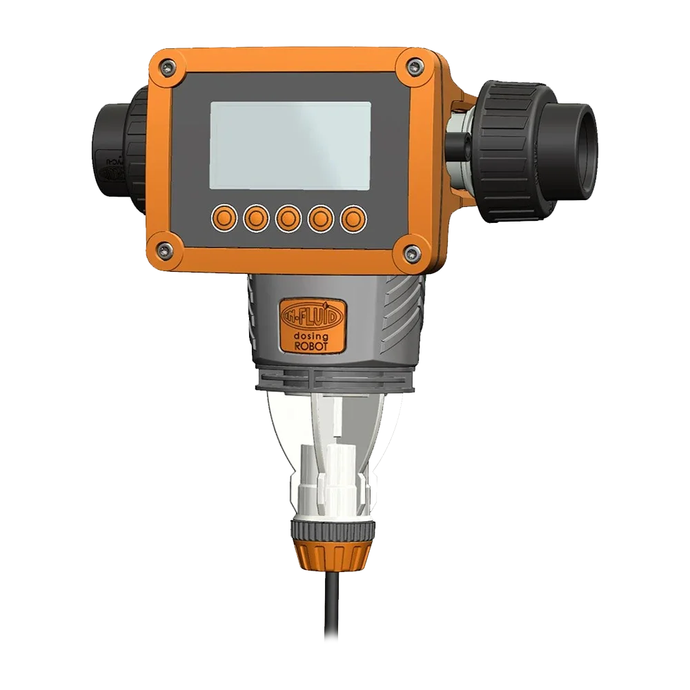 This revolutionary Dosing Robot is the ultimate solution to bring digital dosing and your water management to a new level. The CDR-25 is a combination dosing device that provides water flow registration and product dosing at the same time. The unique electronic sensor technology has a flow detection varying from 100 mL (0.1L) / minute to 100 L / minute. The magnetic driven piston is powerful and has a consistent output of approximately 0.7 mL per stroke. The CDR-25 injects products directly into the waterline which avoids injection valve failures. The CDR-25 can be programmed with multiple dosing options including scheduled time dosing, low flow dosing (for start-ups), or regular dosing ratios from 1 – 50,000. The digital screen makes it easy to control the pump settings and monitor all information and history tracking.